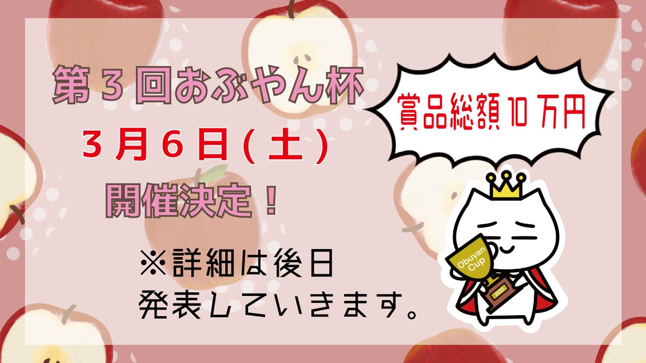 来月3月6日(土曜日)におぶやん杯があります!